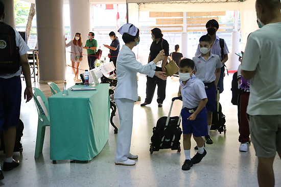 บรรยากาศ การเปิดเรียนแบบผสมผสาน Hybrid ระดับประถมมศึกษา ตอนต้น