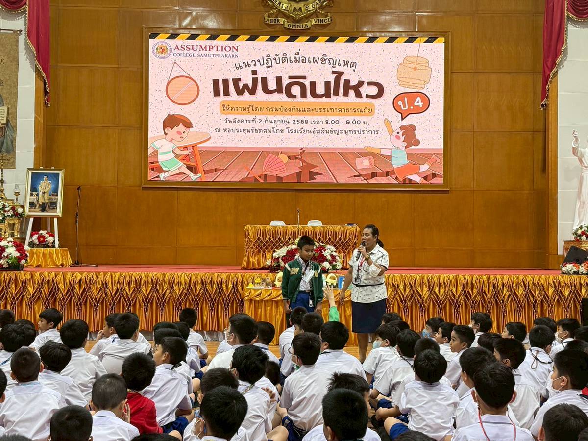 กิจกรรม Morning Assembly ในหัวข้อ แนวปฏิบัติเมื่อเผชิญเหตุแผ่นดินไหว ของนักเรียนระดับชั้นประถมศึกษาปีที่ 4 เขียนข่าวโดย : มิสณัฐพิมล แสงประไพ ภาพโดย : คณะครูระดับชั้นประถมศึกษาปีที่ 4 อัปเดตโดย : งานประชาสัมพันธ์และเว็บไชต์