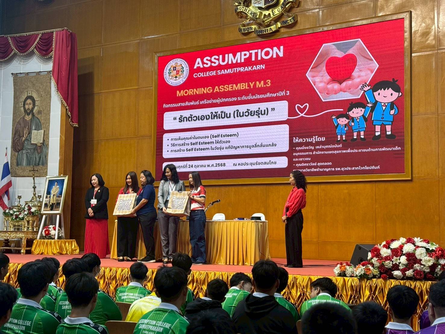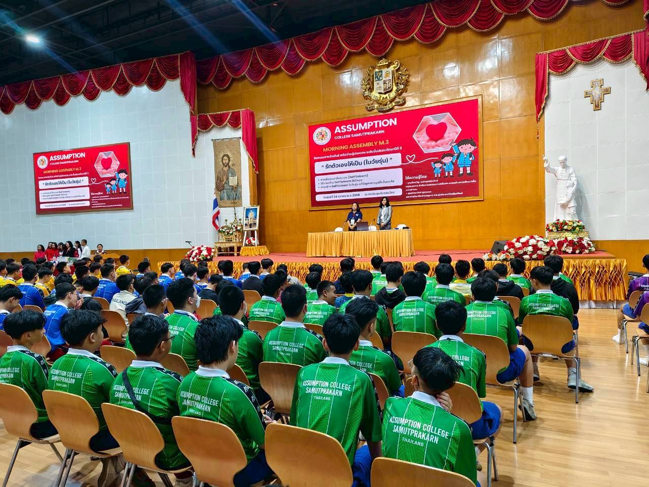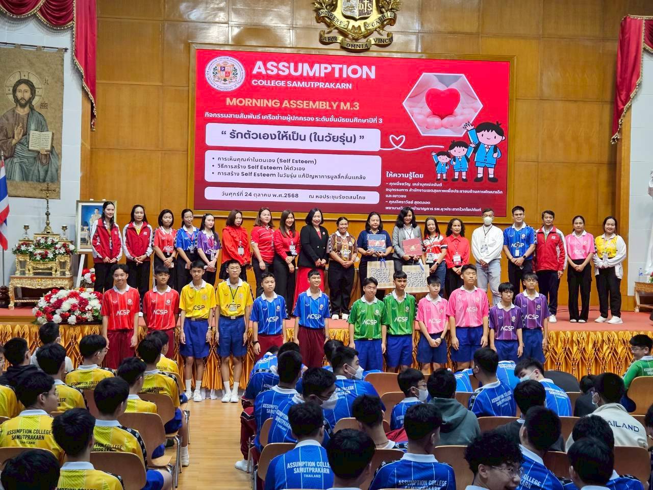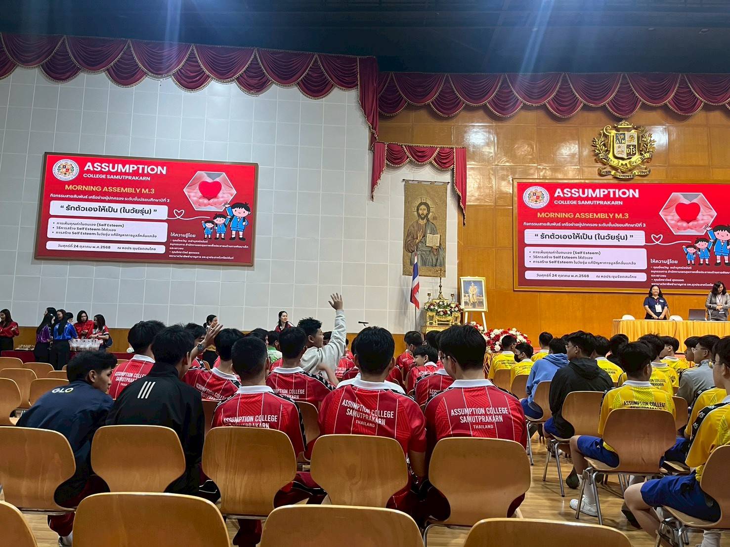 💚💚💫👨👩👧👦 งานกิจกรรมสายสัมพันธ์ เครือข่ายผู้ปกครอง "MORNING ASSEMBLY" ระดับชั้นมัธยมศึกษาปีที่ 3 ในหัวข้อ ❣️❤️🩹 ' รักตัวเองให้เป็น (ในวัยรุ่น) ' 🩷💗 เขียนข่าวโดย : มิสธนิตา เพียวงษ์ ภาพโดย : มิสและมาสเตอร์ระดับชั้นมัธยมศึกษาปีที่ 3 อัปเดตโดย : งานประชาสัมพันธ์และเว็บไชต์ ระดับชั้นมัธยมศึกษาปีที่ 3 ร่วมกับเครือข่ายผู้ปกครอง ได้จัดกิจกรรม MORNING ASSEMBLY ขึ้นในวันศุกร์ที่ 24 ตุลาคม พ.ศ.2568 โดยมีวัตถุประสงค์เพื่อให้นักเรียนเรียนรู้ เข้าใจ และยอมรับในความแตกต่างทั้งของตนเองและผู้อื่น และการปฏิบัติตนและแก้ปัญหาภายใต้สถานการณ์ต่าง ๆ ที่ต้องเผชิญในอนาคต ทั้งนี้กิจกรรม MORNING ASSEMBLY ระดับชั้น ม.3ได้เชิญคุณมิ่งขวัญ เหล่าบุศณ์อนันต์ และ คุณอิศราวัลย์ สุดตลอด วิทยากรที่มีความสามารถ ความเชี่ยวชาญ ด้านการเข้าใจ และแก้ปัญหาในวัยรุ่นยุคใหม่ภายใต้สิ่งเร้า และเทคโนโลยีที่พัฒนายิ่งขึ้นทุกวัน โดยนักเรียนระดับชั้น ม.3 จะได้เรียนรู้เกี่ยวกับหัวข้อ การเห็นคุณค่าในตัวเอง วิธีการสร้าง self esteem ให้ตัวเอง รวมถึงการสร้าง self esteem ในวัยรุ่นแก้ปัญหาการบูลลี่กลั่นแกล้ง เป็นต้น