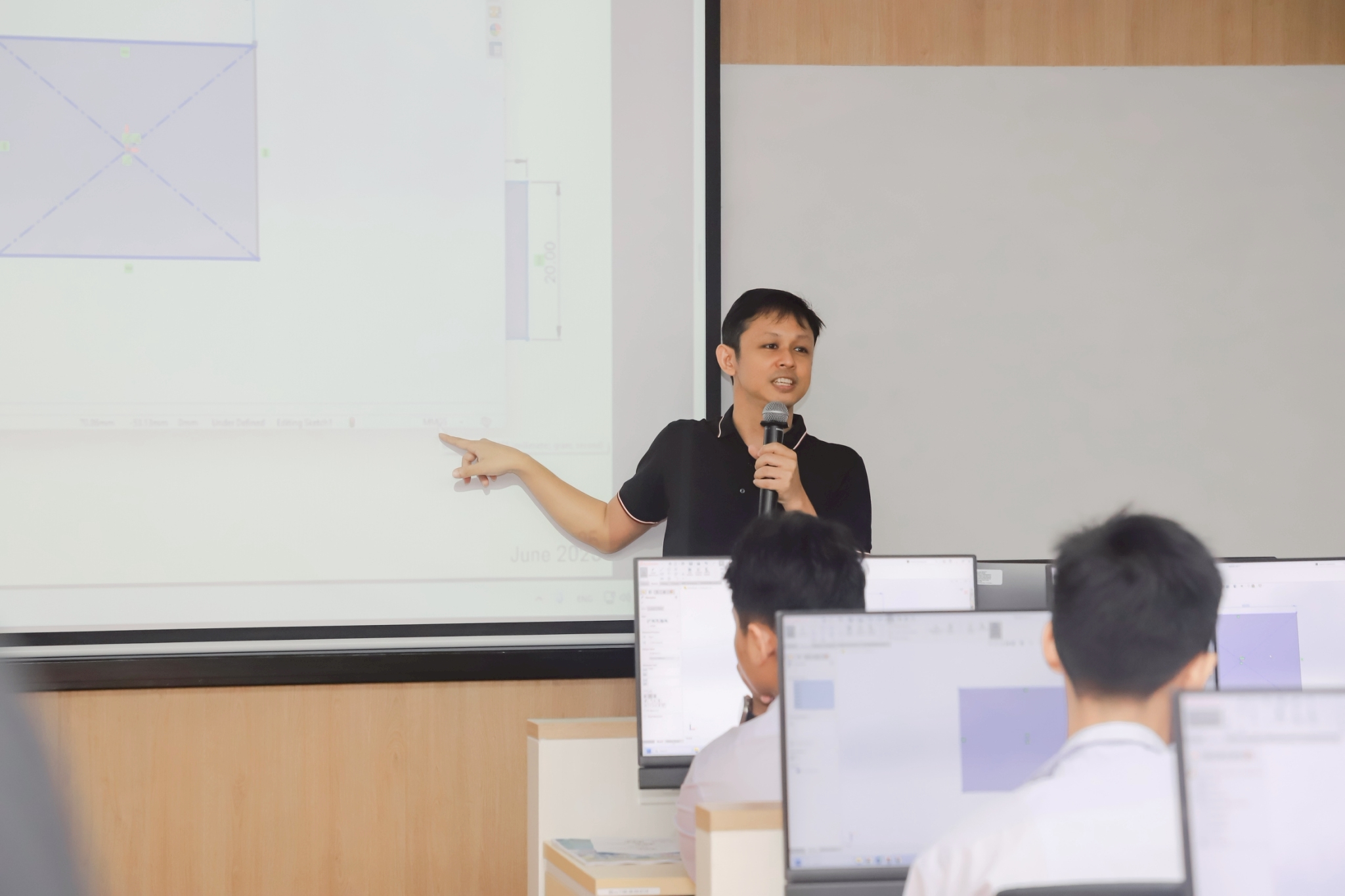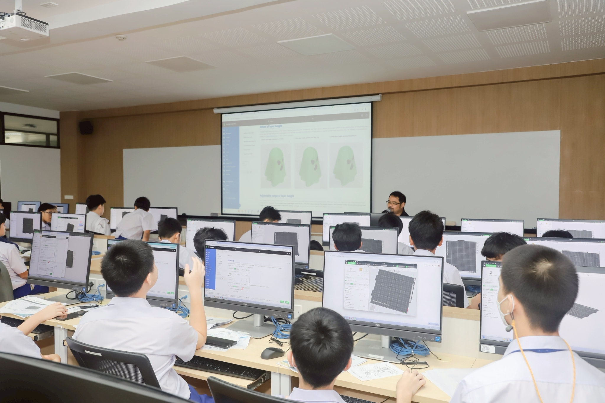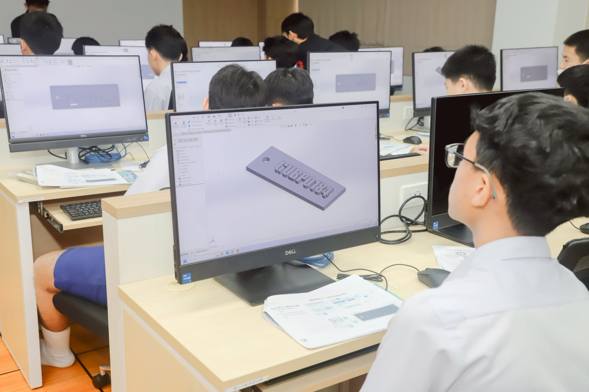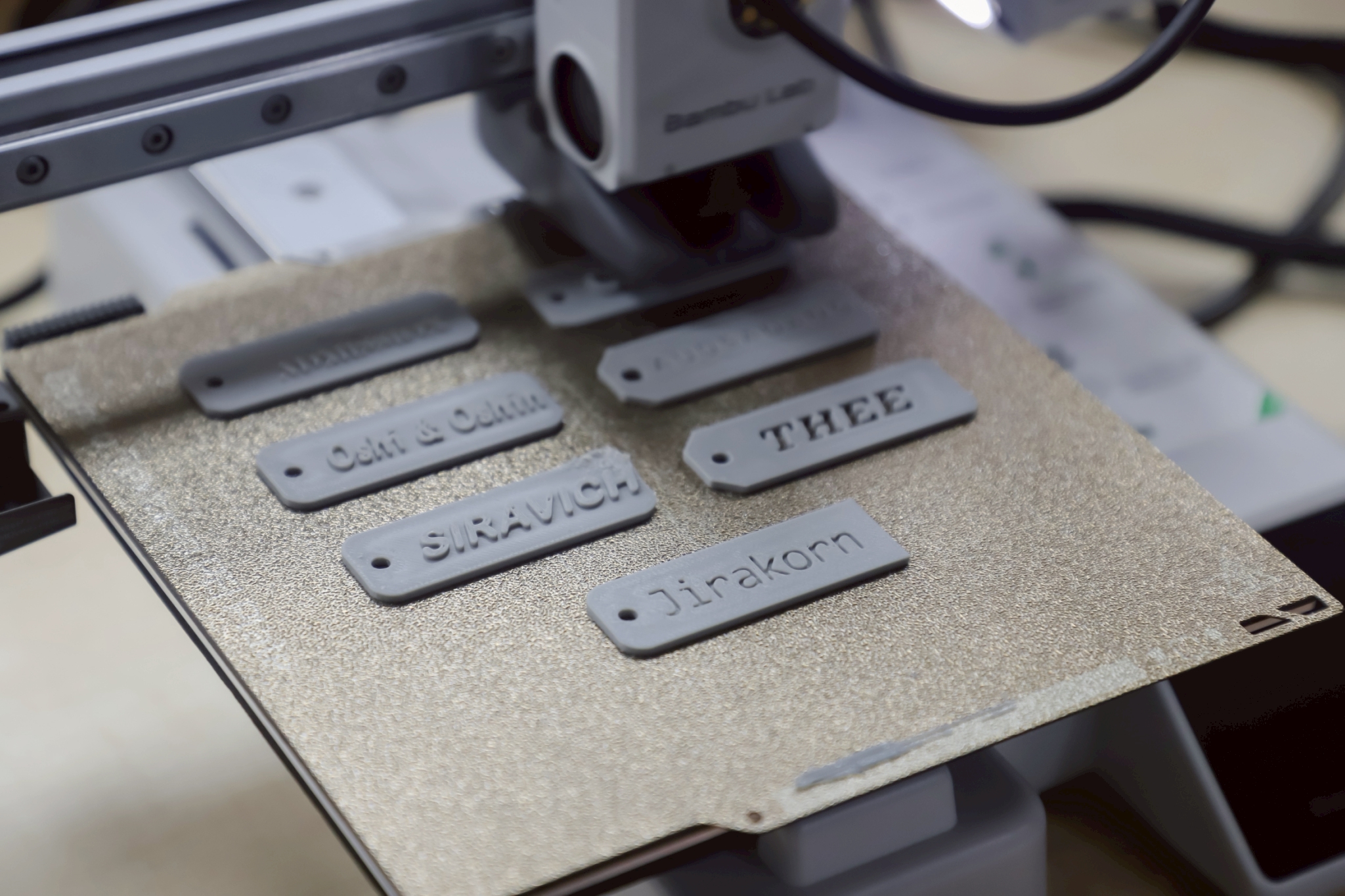กลุ่มฟิสิกส์/วิศวกรรม (3D Printing): '3D Printing & Modeling' น้องๆ ได้เรียนรู้กระบวนการคิดเชิงออกแบบ (Design Thinking) และได้ใช้โปรแกรมคอมพิวเตอร์ออกแบบโมเดล 3 มิติของตัวเอง และที่พิเศษคือ... ทุกคนได้สั่งพิมพ์ผลงาน 'พวงกุญแจ' ที่ออกแบบเอง กลับบ้านเป็นที่ระลึก