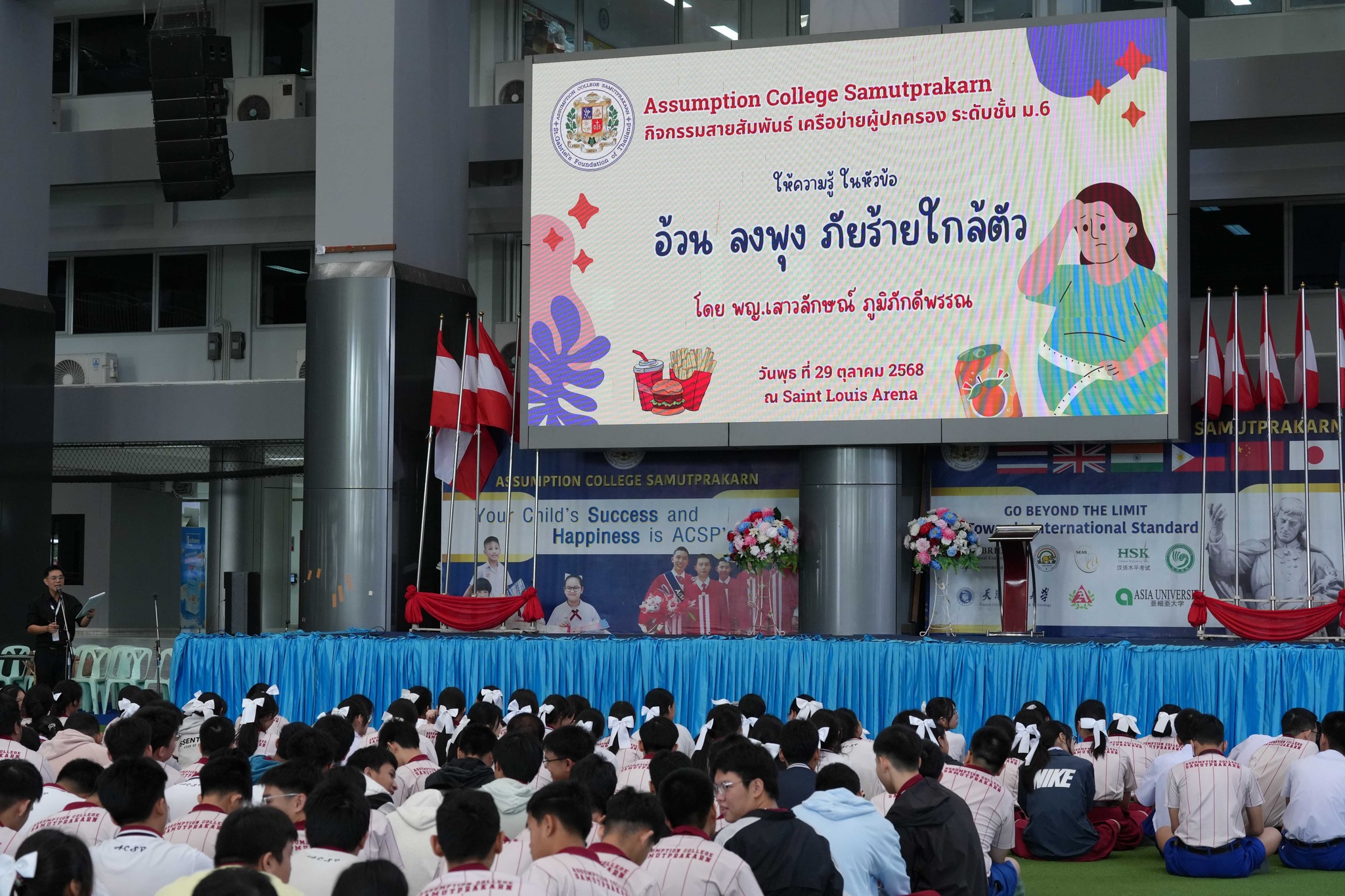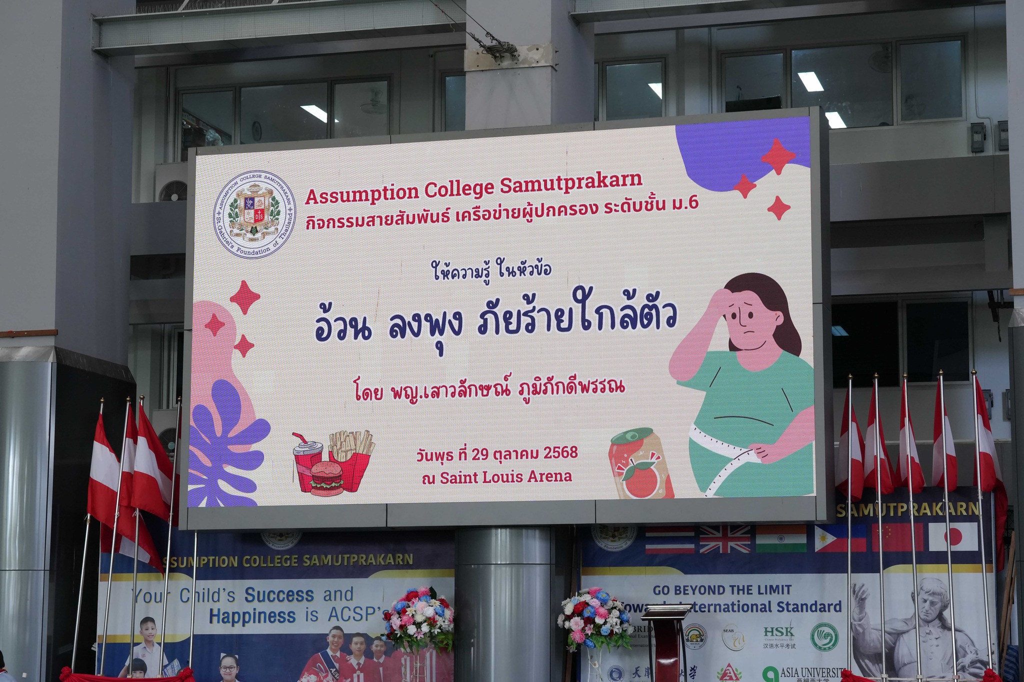 กิจกรรมสายสัมพันธ์ เครือข่ายผู้ปกครอง "MORNING ASSEMBLY" ระดับชั้นมัธยมศึกษาปีที่ 6 ในหัวข้อ' อ้วนลงพุง ภัยร้ายใกล้ตัว'