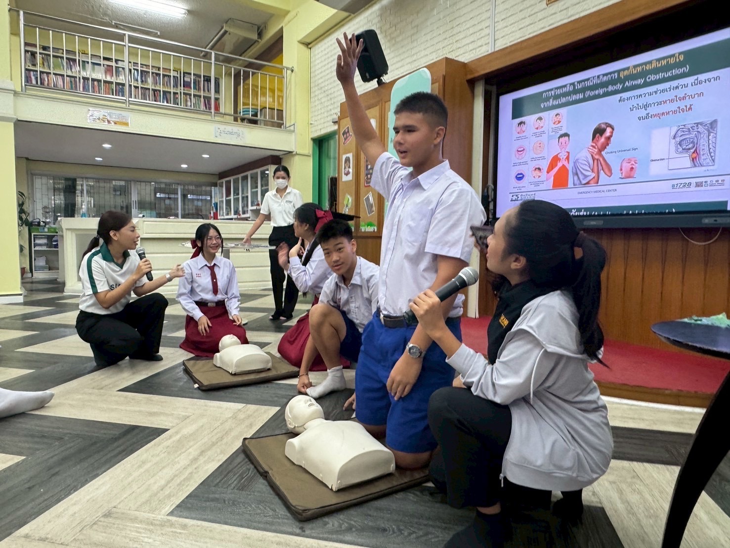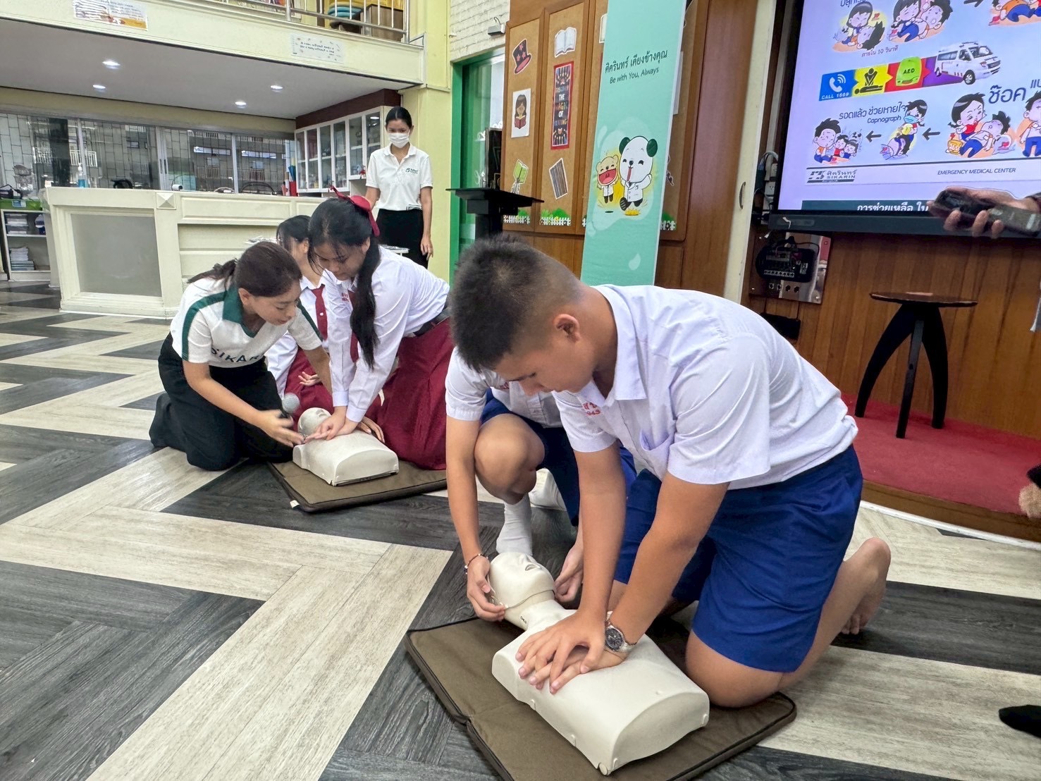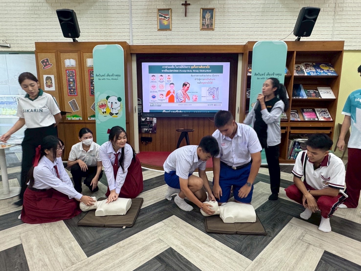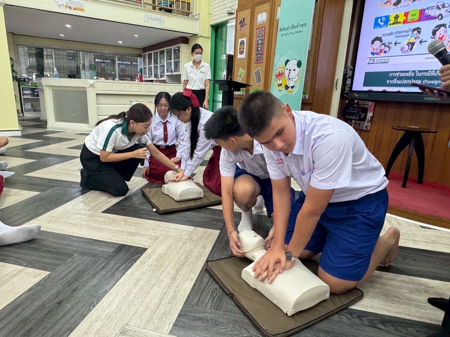 Students from Secondary 1 to 6 at ACSP took part in an essential First Aid Training Seminar held on August 20 and 27 at the ACSP Discovery Center, led by healthcare professionals from Sikarin Hospital. The training focused on equipping students with vital lifesaving skills such as Basic First Aid, Cardiopulmonary Resuscitation (CPR), use of an Automated External Defibrillator (AED), and how to assist someone who is choking.