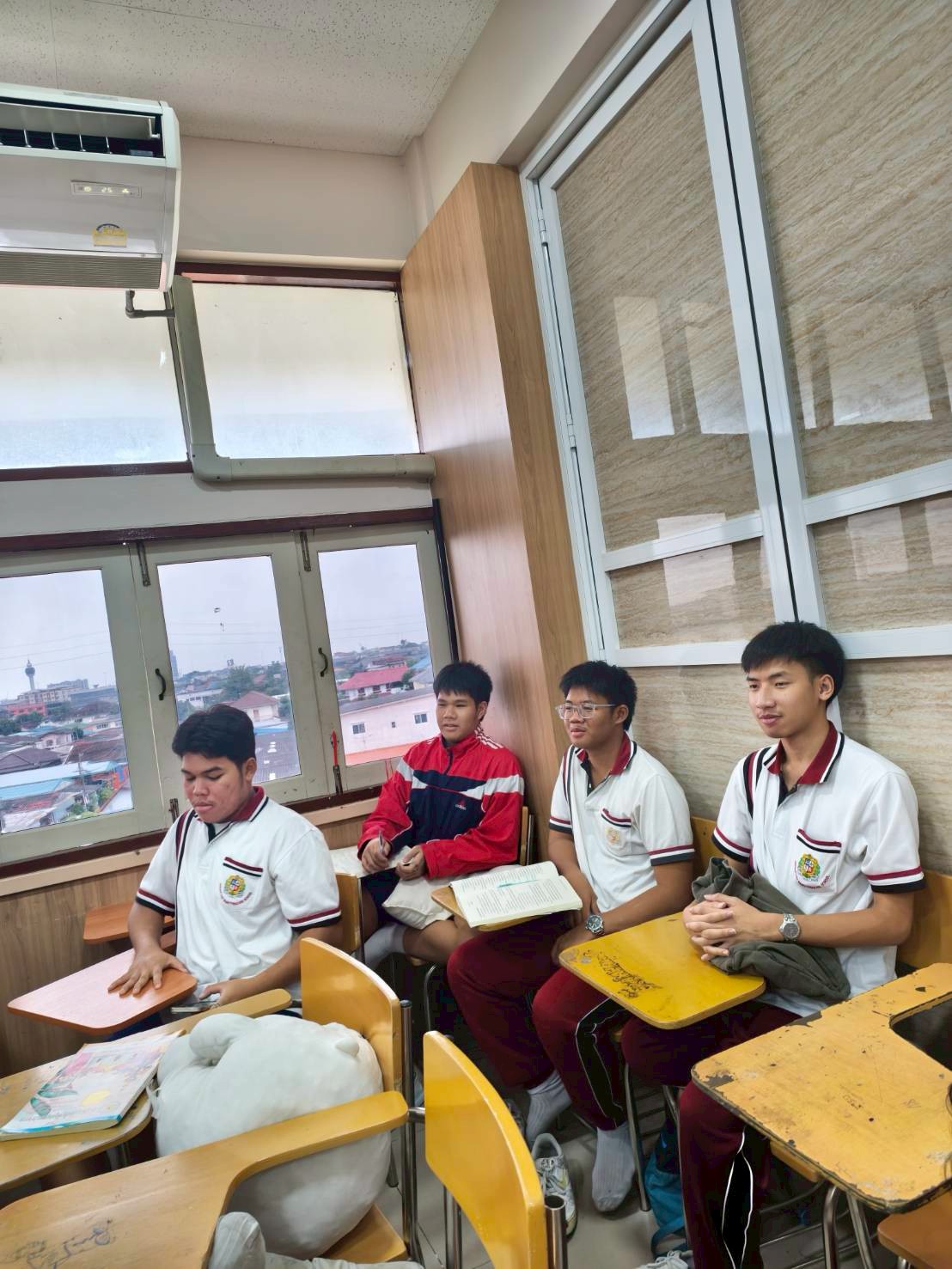 บรรยากาศการจัดกิจกรรมการเรียนการสอนในหัวข้อ “การเขียนอธิบาย บรรยาย และพรรณนา” สำหรับนักเรียนระดับชั้นมัธยมศึกษาปีที่ 6 โดยคุณครูผู้สอนได้จัดกิจกรรมการเรียนรู้ผ่าน “เสียงเพลง” เพื่อกระตุ้นความสนใจและสร้างความเข้าใจเชิงลึกในรูปแบบการเขียนทั้งสามประเภท