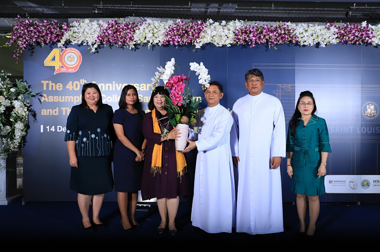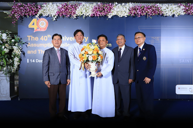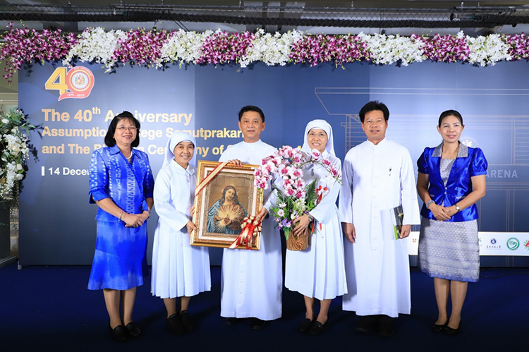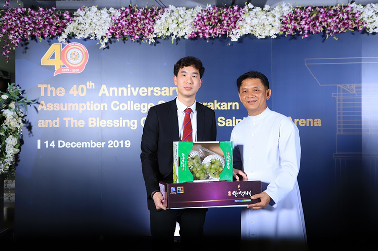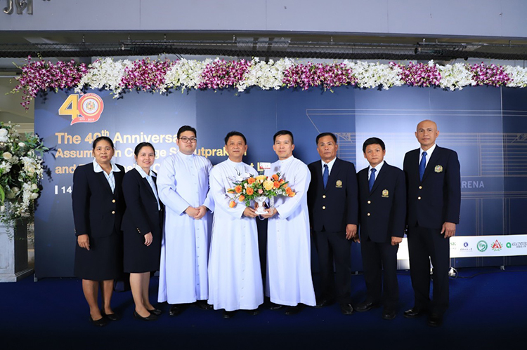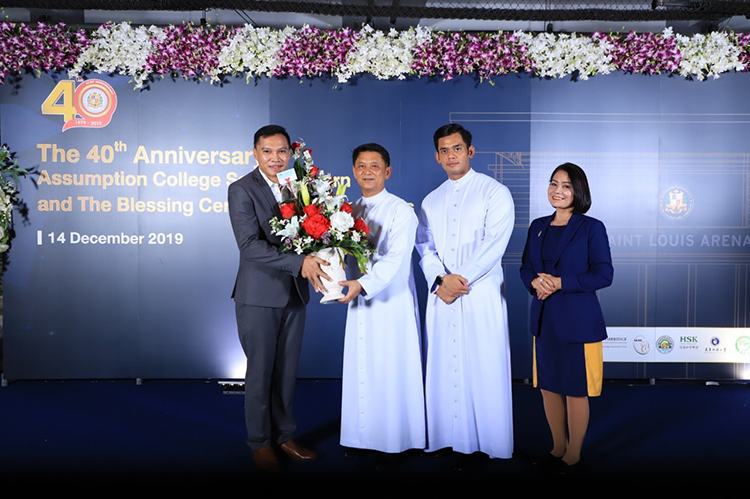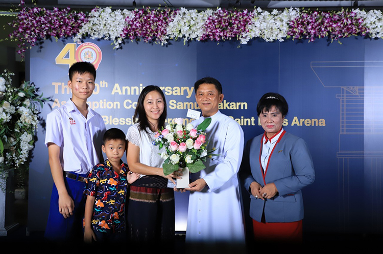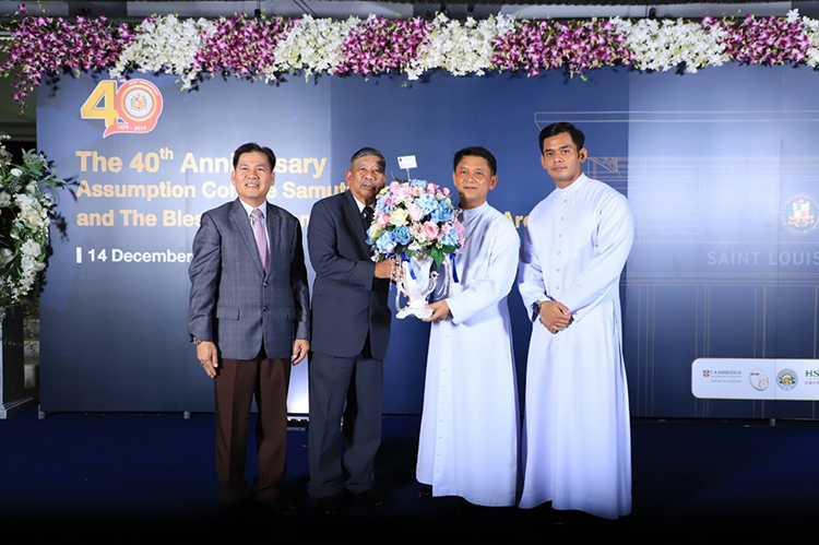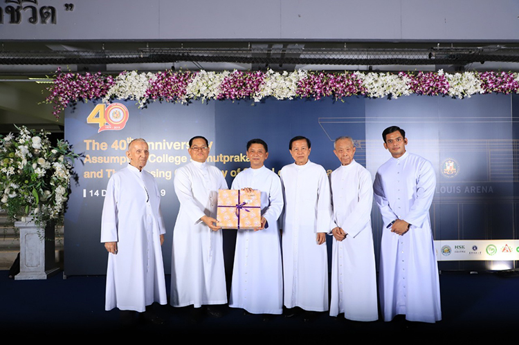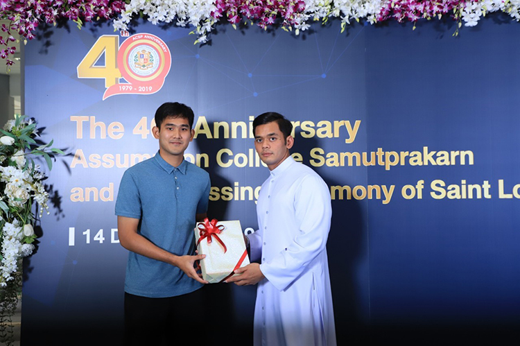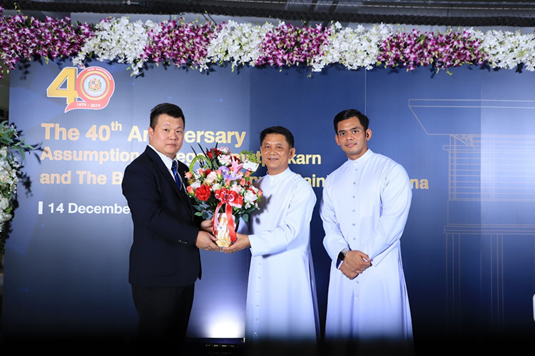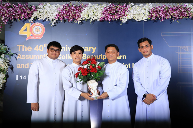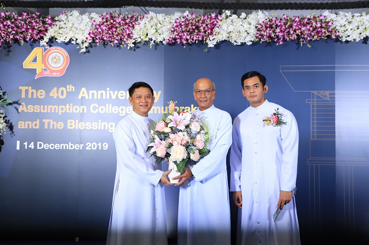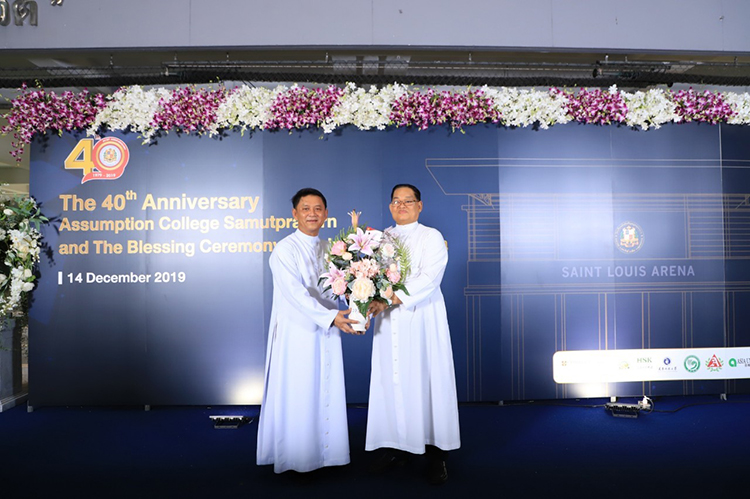 ภราดา ดร.พิสูตร วาปีโส ผู้อำนวยการโรงเรียนอัสสัมชัญสมุทรปราการ รับมอบของที่ระลึกจากคณะภราดา ผู้แทนในเครือมูลนิธิคณะเซนต์คาเบรียลฯ และผู้แทนจากหน่วยงานต่างๆ เนื่องในโอกาสฉลองครบรอบ 40 ปีการก่อตั้งโรงเรียนอัสสัมชัญสมุทรปราการ.
